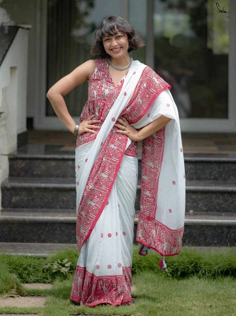 Saree Fabric: Premium Linen Cotton with beautiful digital print