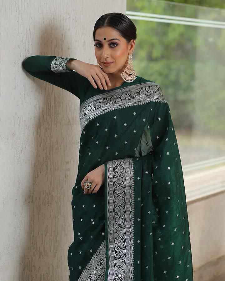 MF 1680 GREEN BANARASI SOFT LICHI SILK SAREE