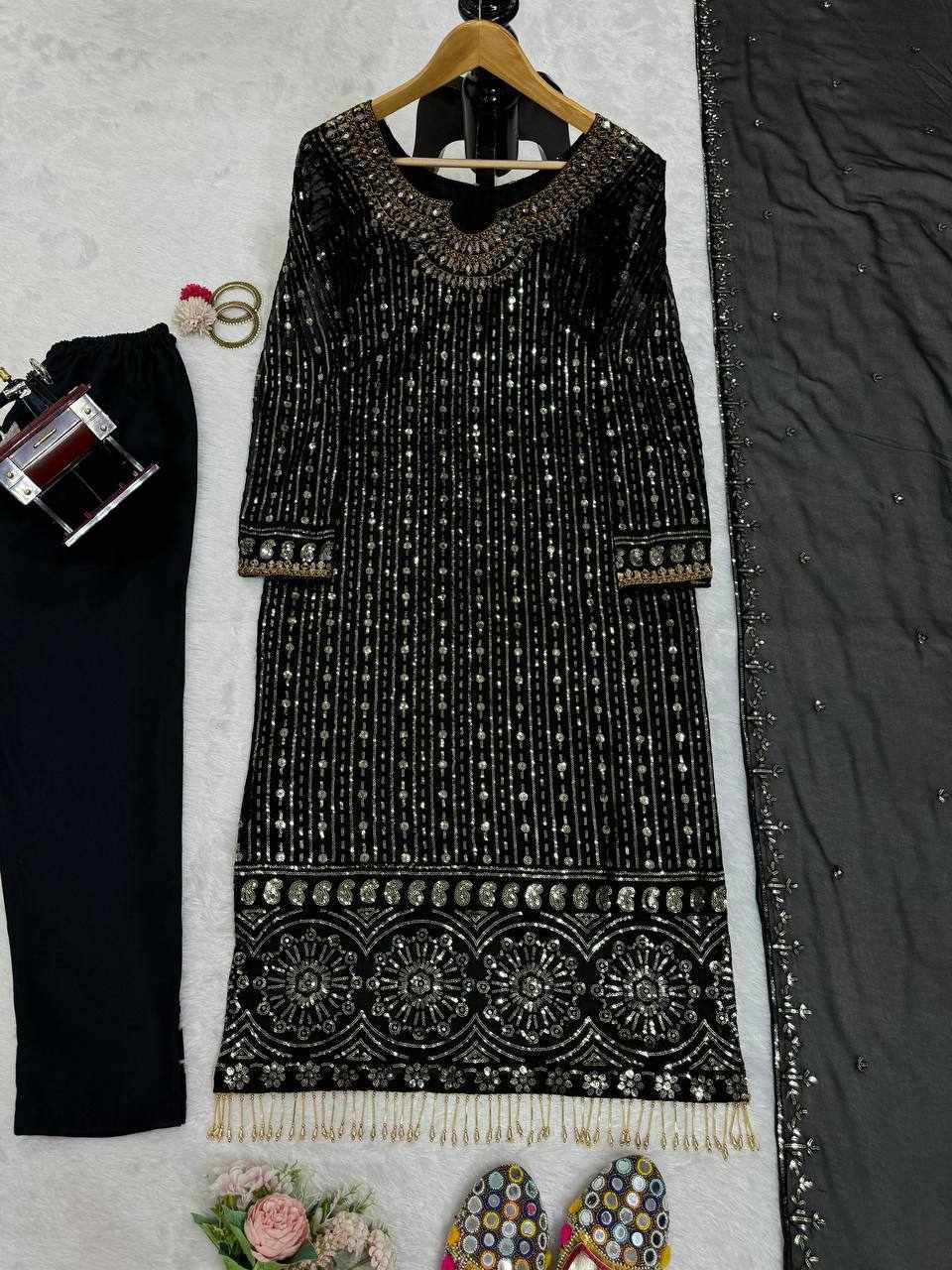 • Work: Beautiful Thread Embroidery with Sequence Work, Real Mirror Work & Stylish Latkan