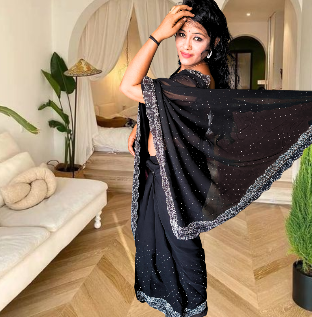 S4s Black Karishma Siroski Stones Lace Georgette Party Wear Saree